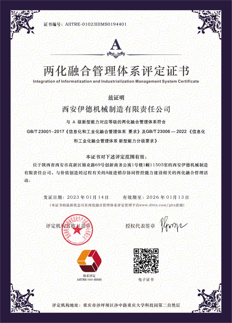 兩化融合管理體系評定證書